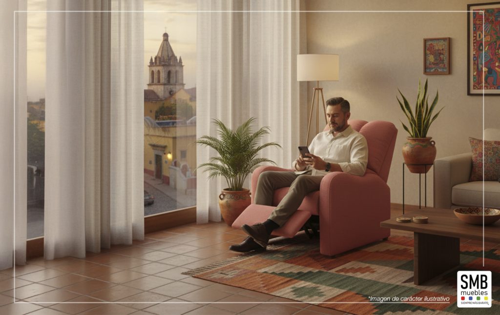 Sillón con mecanísmo reclinable con 2 niveles, tapizado en loneta de alta calidad, 100% poliéster, con 6 diferentes colores.