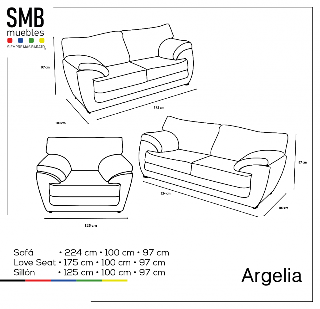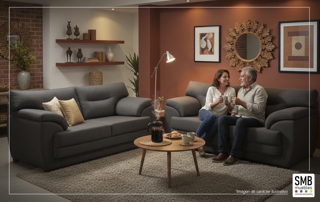 Sala compuesta por loveseat y sofá tapizado en loneta de alta calidad, 100% poliéster, 6 diferentes colores.