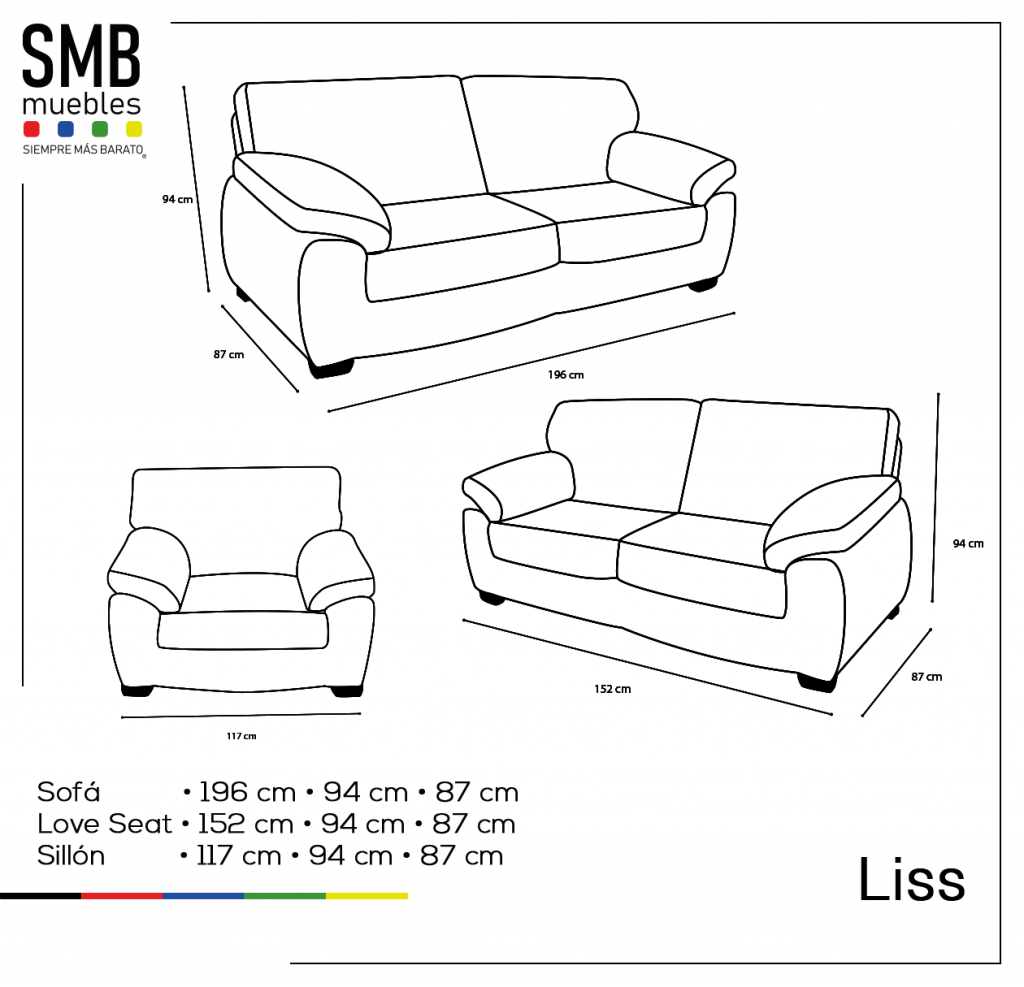 | Color | Azul, Beige, Ébano, Gris, Oxford, Salmón |