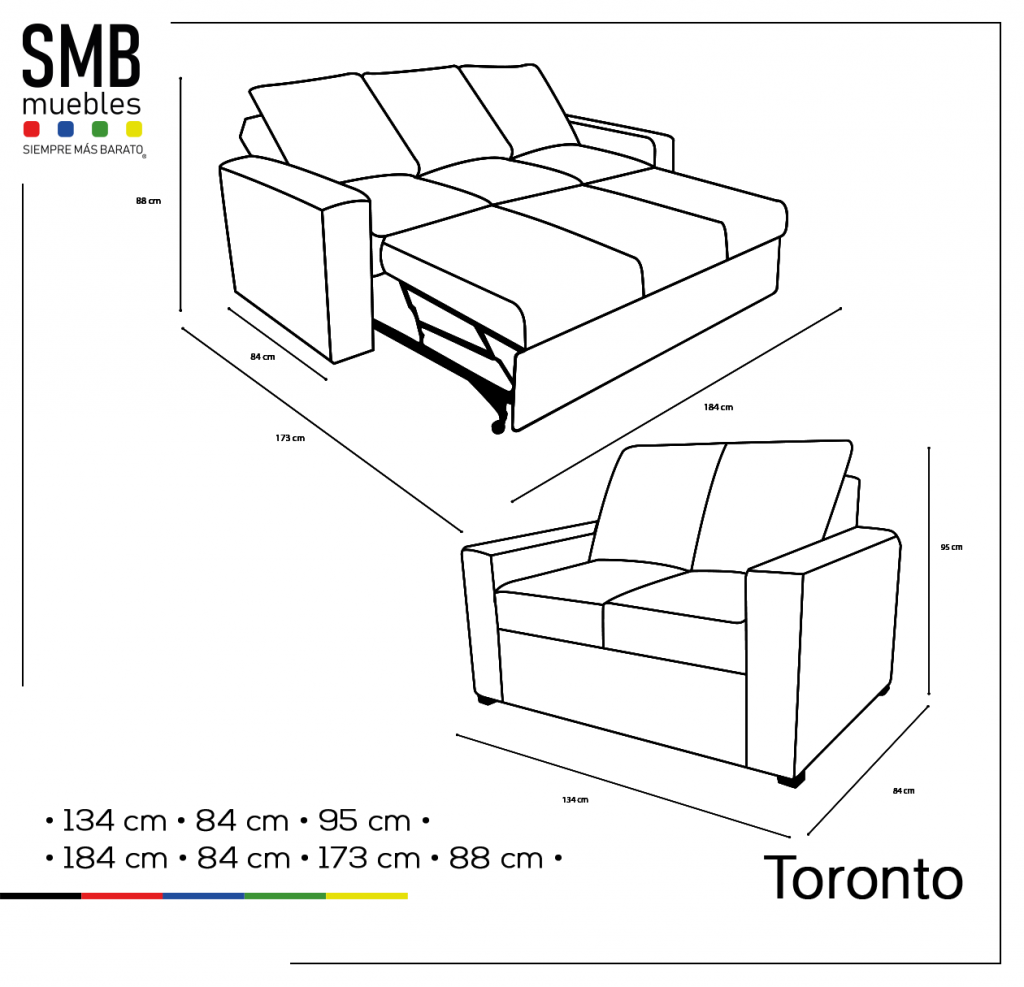 Sofá-cama tapizado en loneta de alta calidad, 100% poliéster, 6 diferentes colores y 3 cojines respaldo.